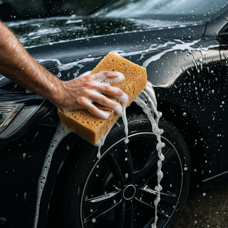 اسفنج را داخل محلول فرو برده و بهطور یکنواخت روی بدنه خودرو بکشید.